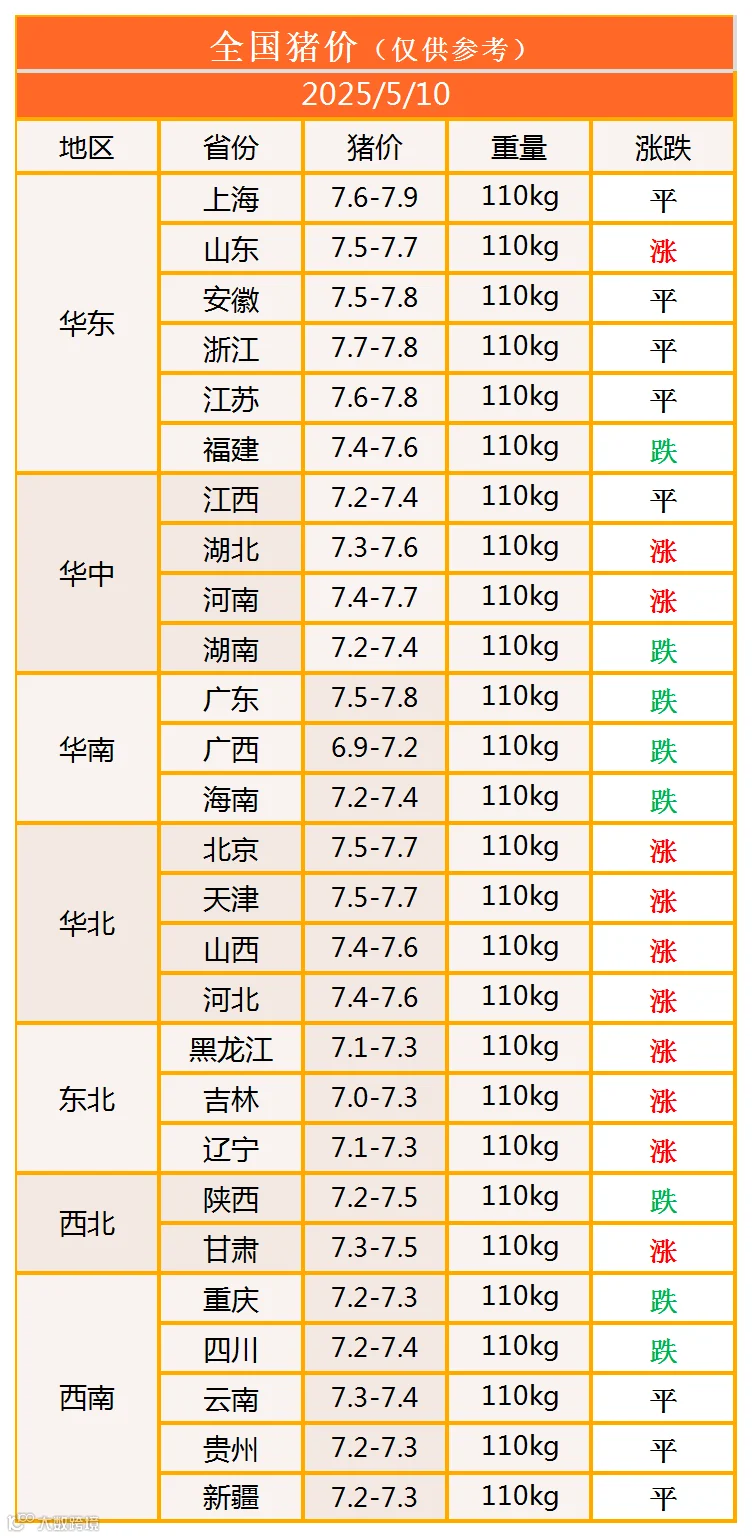 明日猪价2025年5月10日猪价信息