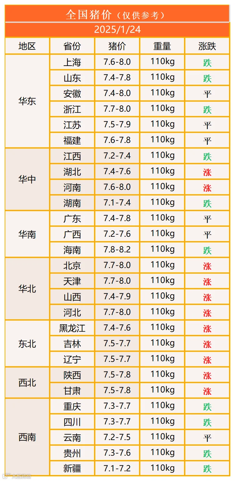 明日猪价2025年1月24日猪价信息