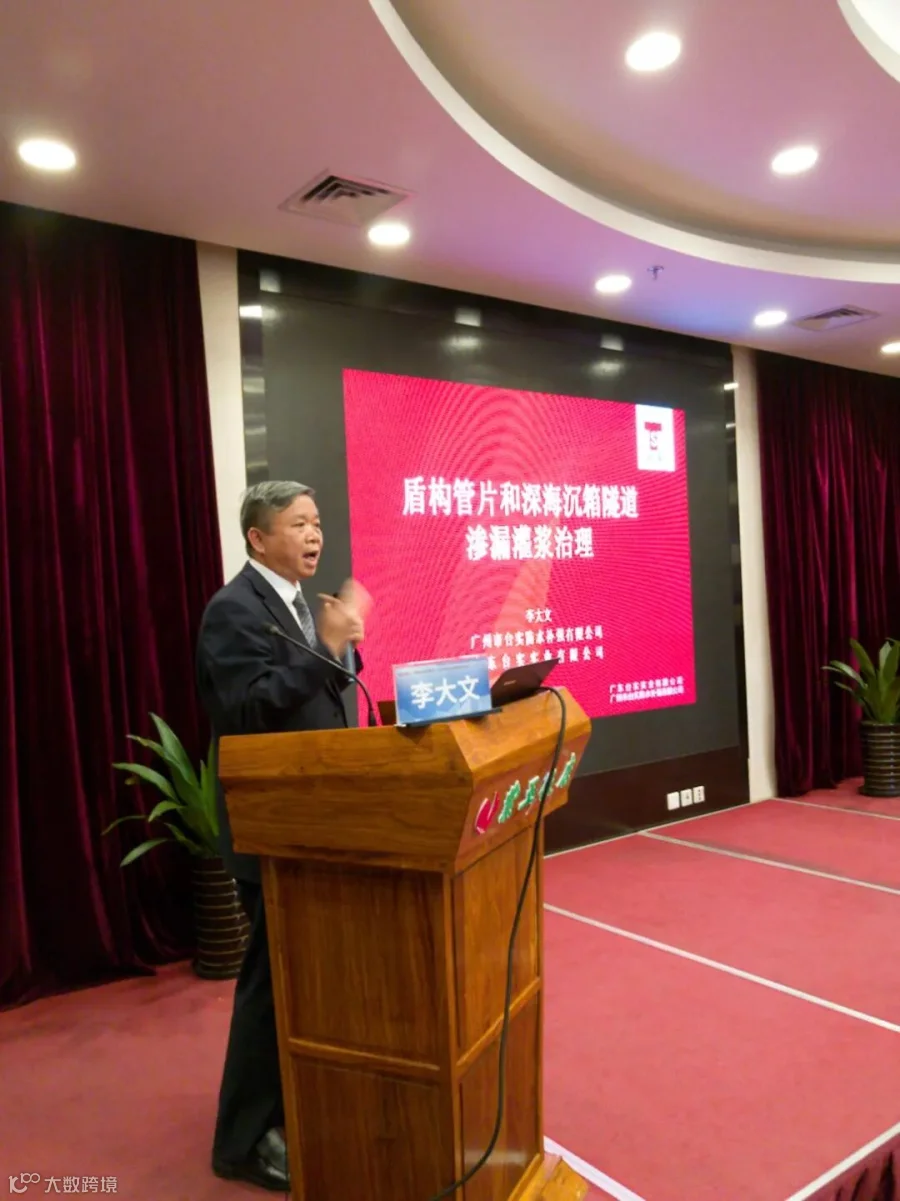 会上,台实总工程师李总做了“盾构管片和深海沉箱隧道渗漏灌浆治理”的报告。