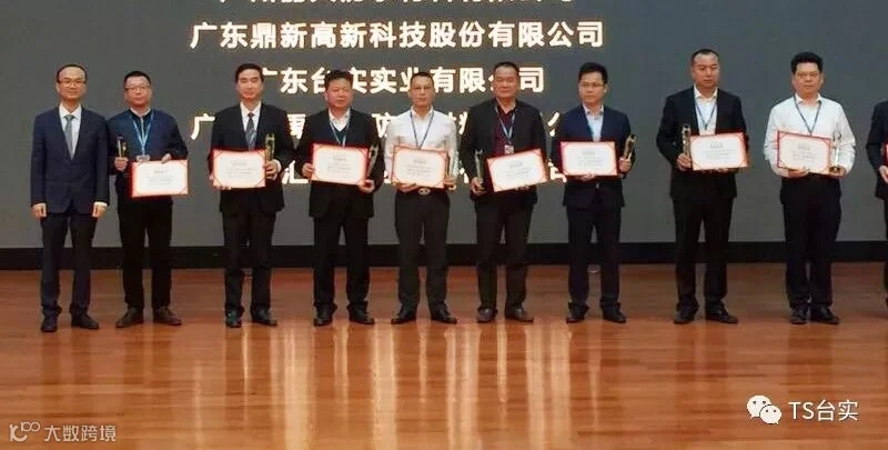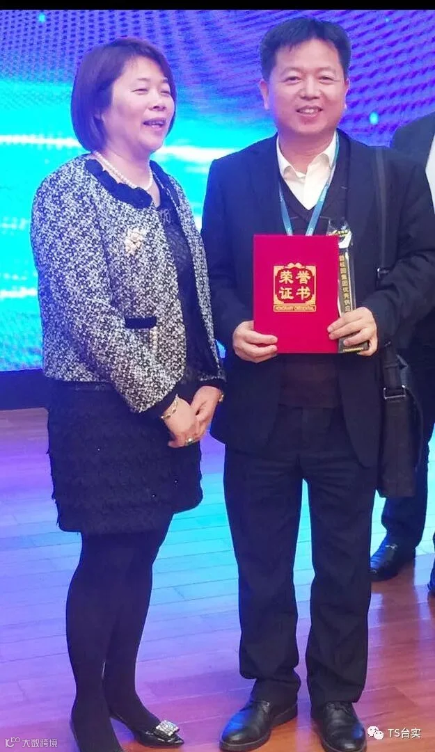 | 台实董事长邓思荣上台领奖(左四)