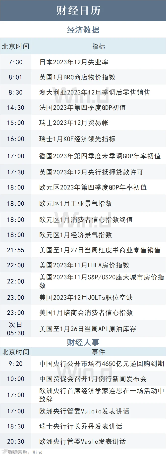 1月29日,资金利率转松,股票市场延续调整,债券无论是短端还是长端都有不同幅度的下行,短利率平均下行3BP左右,长债下行幅度1BP上下。