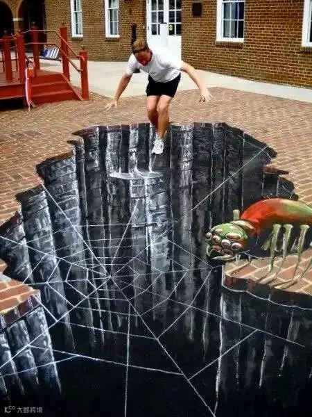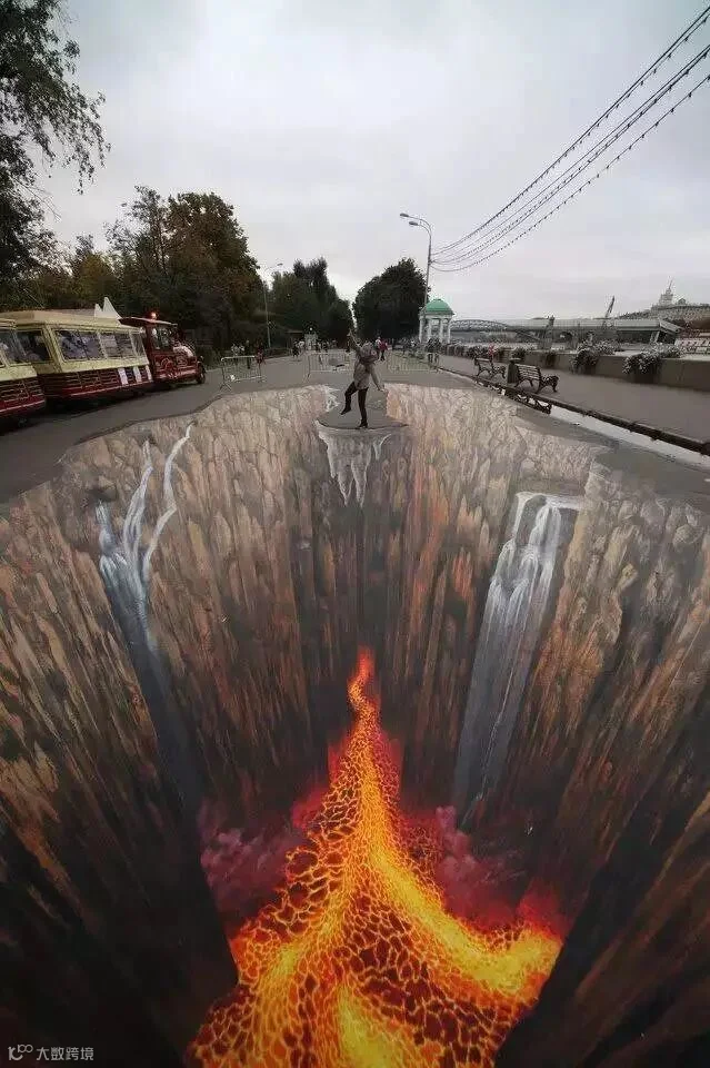 不要那么害怕,这些都是画在地面上的3D涂鸦,只不过,画的太过逼真,如果不小心走上去,还真会吓那么一跳。不信,你来看看。。
