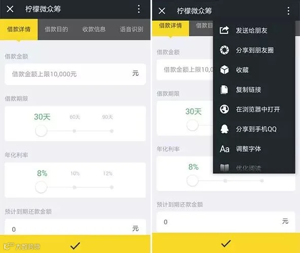 1.直接在微信上的柠檬微众筹<柠檬借款>板块发起,无需审批,一键发布;