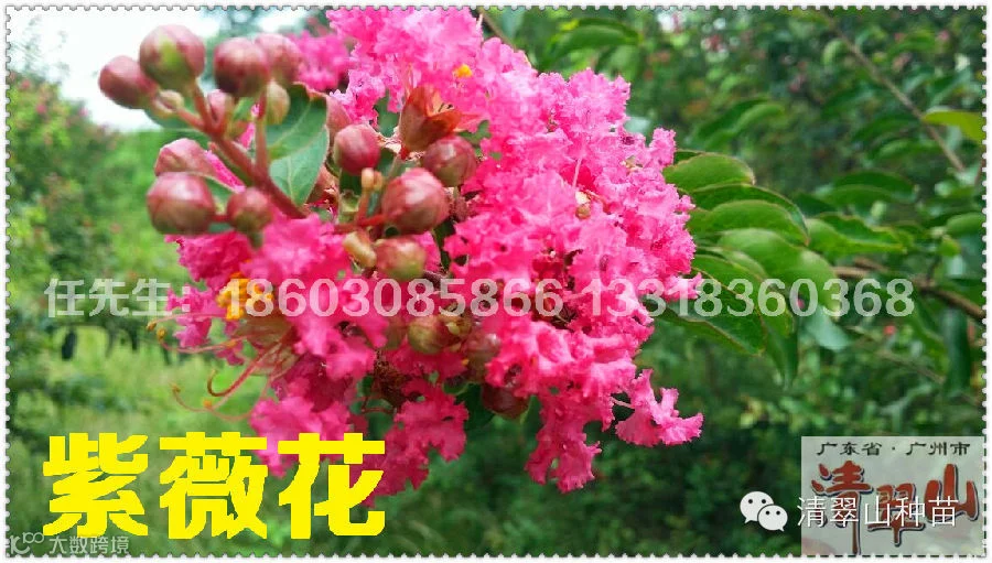 紫薇:又名入【惊儿树、百日红、满堂红、痒痒树】为千屈菜科紫薇属双子叶植物。产于亚洲南部及澳洲北部。中国华东、华中 、华南及西南均有分布,各地普遍栽培。紫薇树姿优美,树干光滑洁净,花色艳丽;开花时正当夏秋少花季节,花期极长,由6月可开至10 月,故有“百日红”之称,又有“盛夏绿遮眼,此花红满堂”的赞语,是观花、观干、观根的盆景良材。