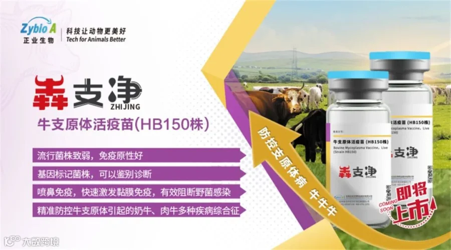 正业生物正梭康--羊快疫、猝狙、羔羊痢疾、肠毒血症、黑疫、肉毒梭菌(C型)、中毒症六联干粉灭活疫苗和犇支净--牛支原体活疫苗(HB150株)作为正业生物针对牛羊疫病防控的新品,它们的推出标志着公司在反刍动物健康解决方案领域迈出了新的步伐。同时,犇支净作为防控牛支原体疾病的首款疫苗,将进一步完善反刍动物疫苗的品类,减少全世界范围内肉牛和奶牛因支原体感染引发的多种疾病综合征。未来,正业生物将持续追求产品创新和技术升级,提升动物的整体健康状况,帮助广大养殖户提高产量、降低成本。