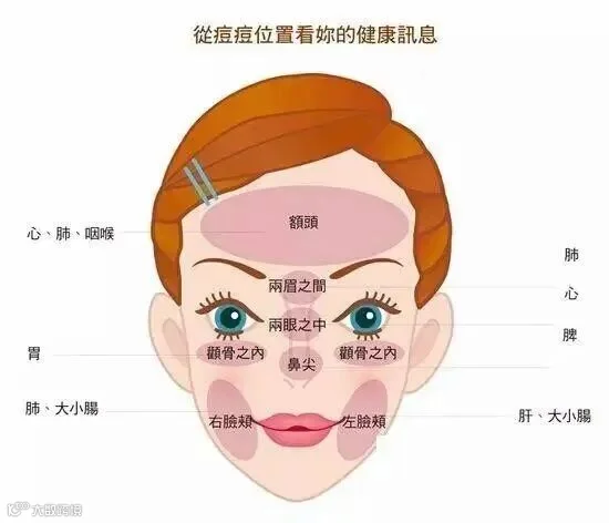 6、从痘痘生长的位置可以看出人体的健康信息。