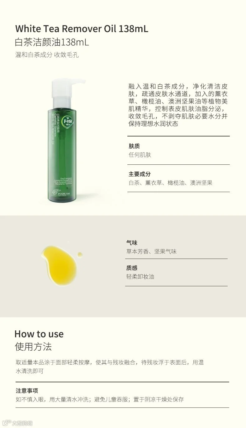 白茶洁颜油更为清爽,杏仁卸妆油较温和、滋润,可以根据自己的喜好选择。我会在这两款油中添加柠檬或尤加利,如果你皮肤暗沉,⻆质厚,油较多,一次清洁就可以感受速白,因这两款的清洁力很强大。