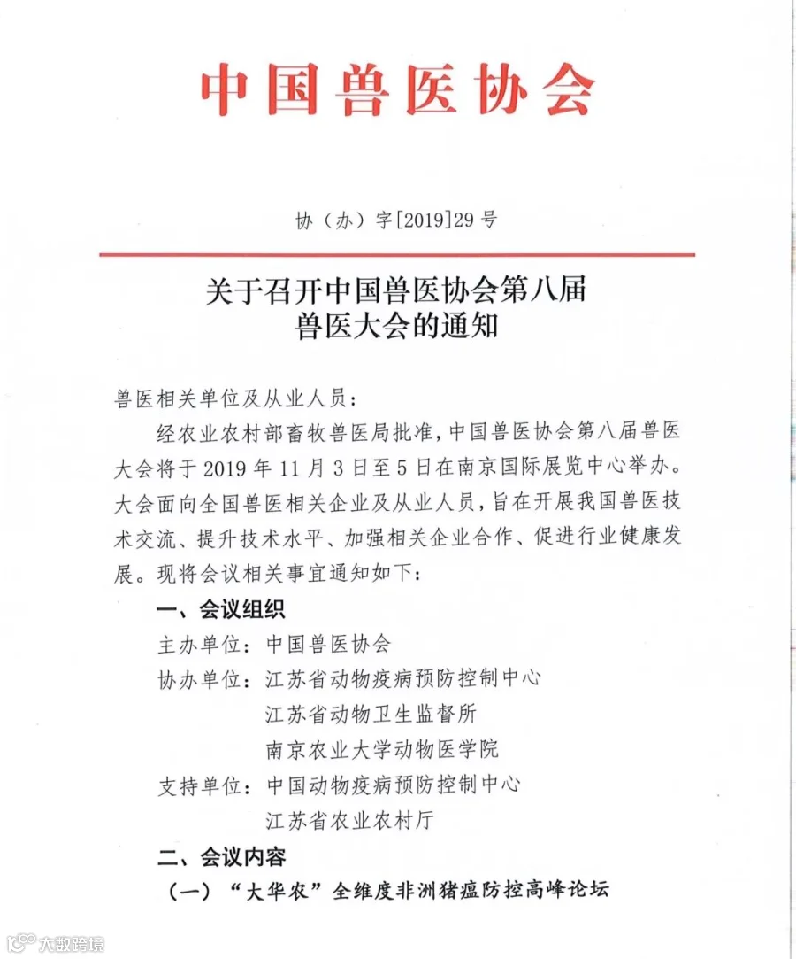 中国兽医协会第八届兽医大会将于2019年11月3日~5日在南京国际展览中心举办。正业生物作为兽医大会银牌展商诚邀您的参与。