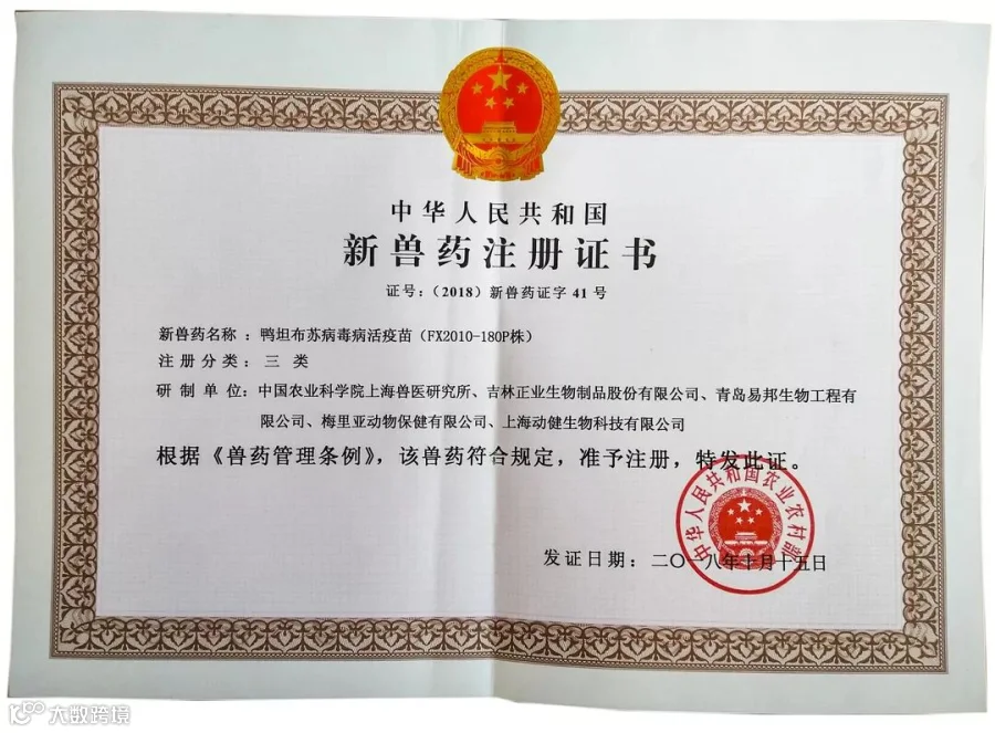 新兽药注册证书