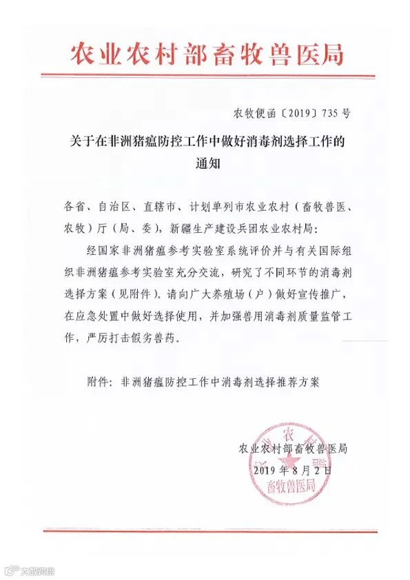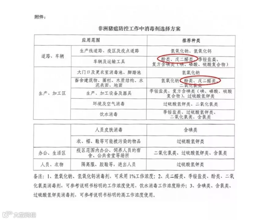 农业农村部发布防控非瘟消毒剂推荐使用方案,酚类、戊二醛等在列