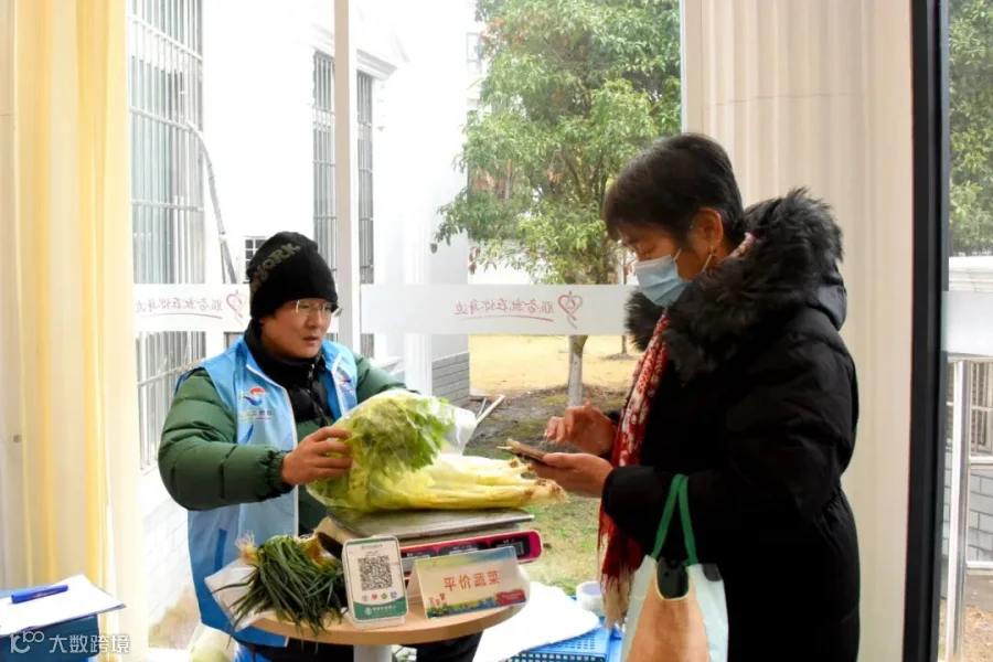 蔬菜摊位上,杨壹明负责的新鲜实惠的农产品受到居民欢迎,特别是老年朋友对此赞不绝口。