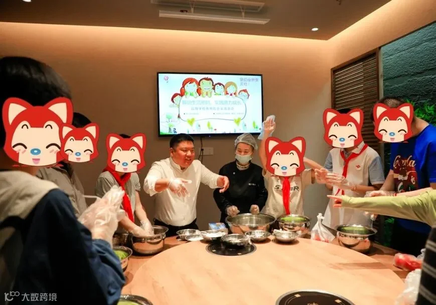 买完菜后,大家来到了广场中央的遵姨大黄牛火锅店,开启一场有趣的烹饪之旅 —— 拌黄瓜。对于这些学生来说,烹饪可能是一个从未接触过的领域,但他们充满了热情和好奇。