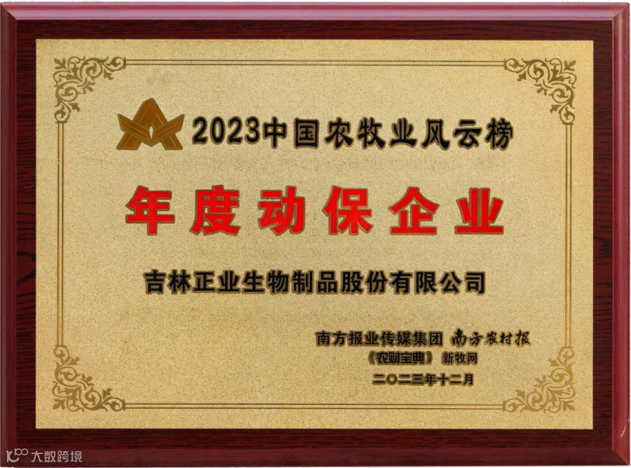 正业生物在本次盛会上赢得至高荣誉——“2023年度动保企业”。