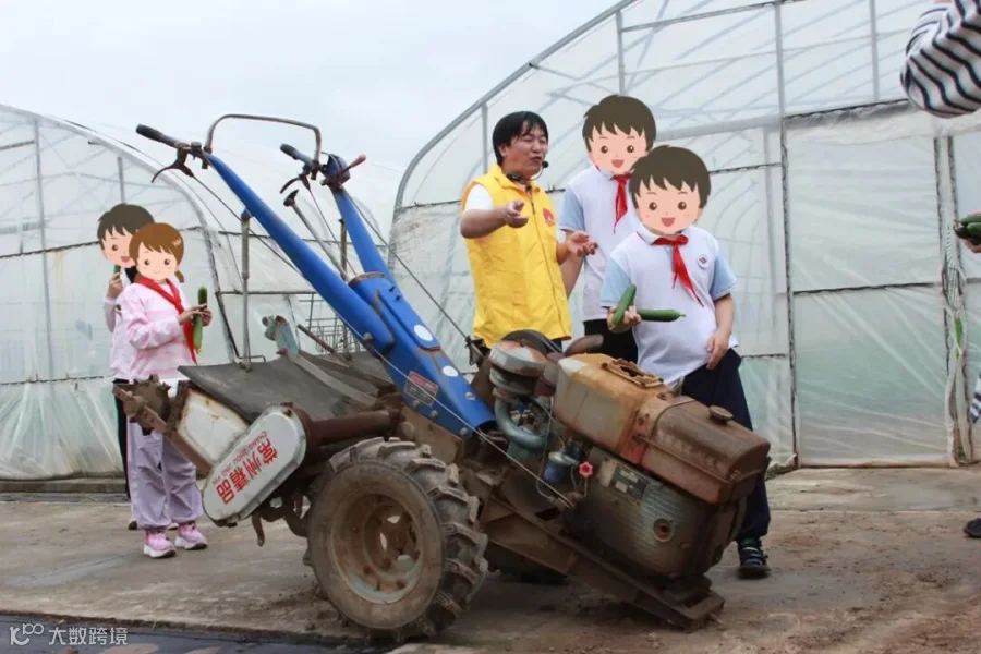 田间的农机展示更是点燃了孩子们的热情。种植户们现场演示翻耕机、拖拉机的操作原理,锄头、耙子等农具依次排开,志愿者们手把手讲解使用方法。在大家的鼓励下,孩子们鼓起勇气握住铁锹,学着翻土挖坑,泥土的芬芳里藏着劳动的快乐。活动尾声,每个小朋友都领到了装满自采蔬果的袋子,沉甸甸的收获让返程的脚步格外轻快。
