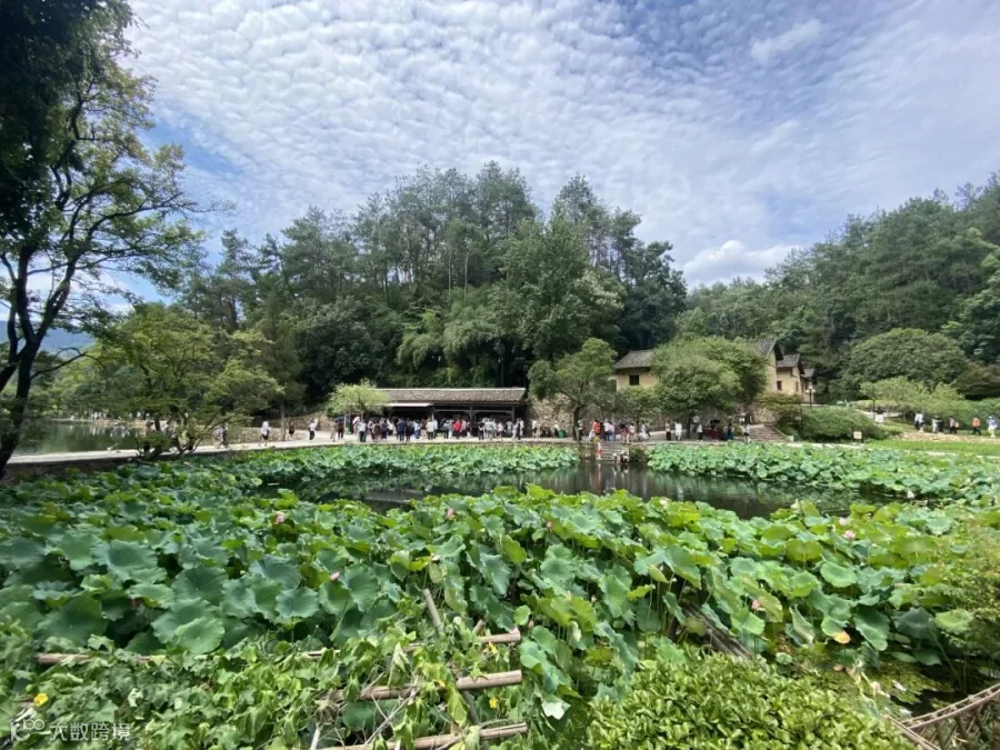 这张照片展现了一个迷人的自然景观,结合了水面、植被和人群,具有很高的观赏价值。