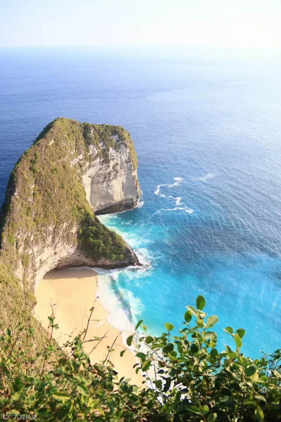 2. **色彩表现**:色彩十分丰富,海水的蓝色与悬崖的绿色形成鲜明对比,增添了画面的层次感。阳光的照射使得海水呈现出渐变的色彩,给人以清新而宁静的感觉。