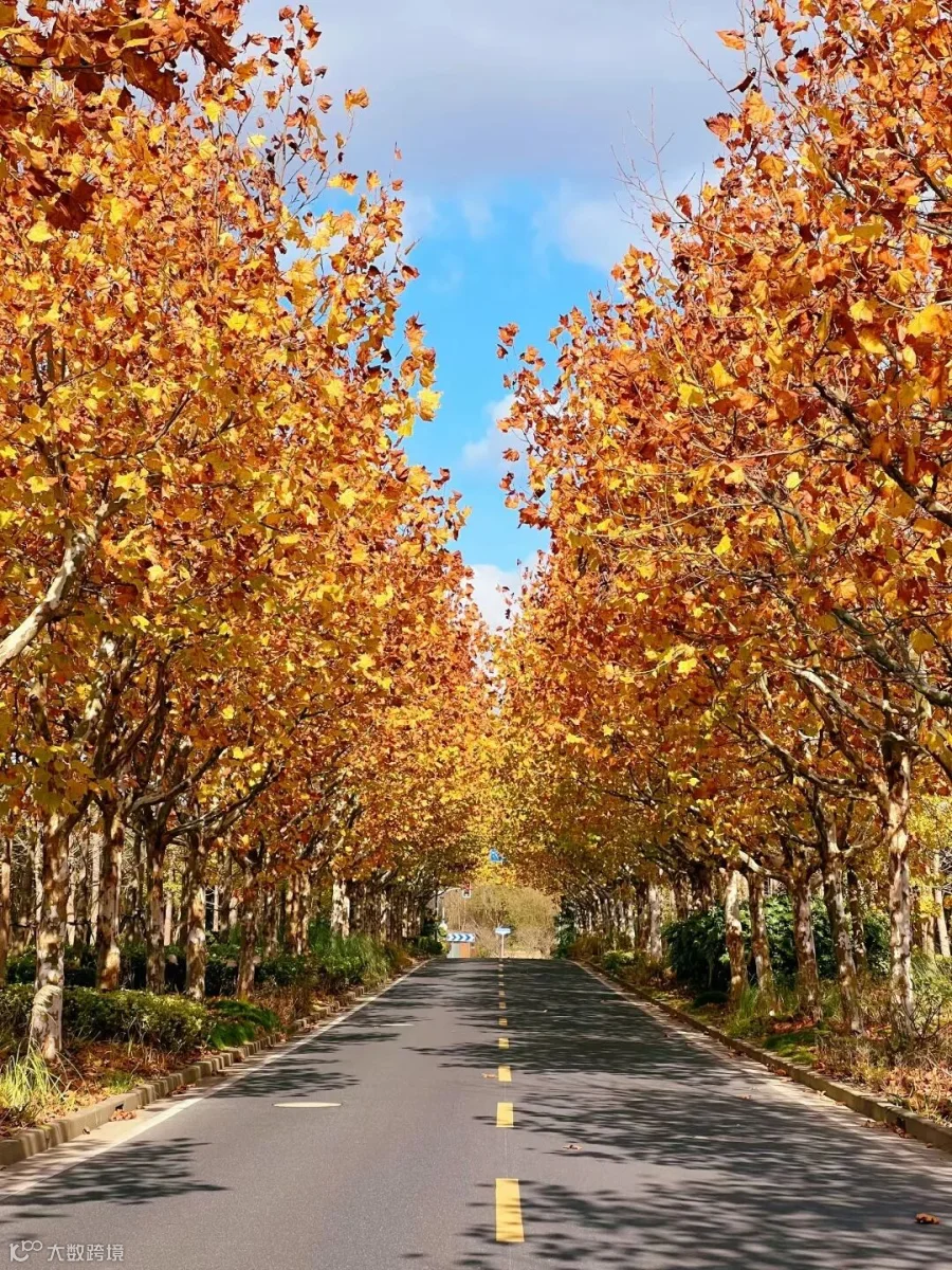 4. **细节呈现**:道路的线条清晰可见,加上黄色的标线,增加了画面的层次感。这条路在秋天的背景下显得格外迷人,仿佛在邀请人们去探索。