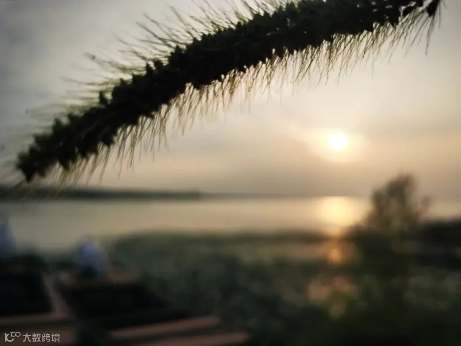 2. **模糊效果**:照片中的轻微模糊效果使得整个场景呈现出一种梦幻的感觉。这样的处理能够引导观众的注意力,强调背景的日落和水面的柔和反射。