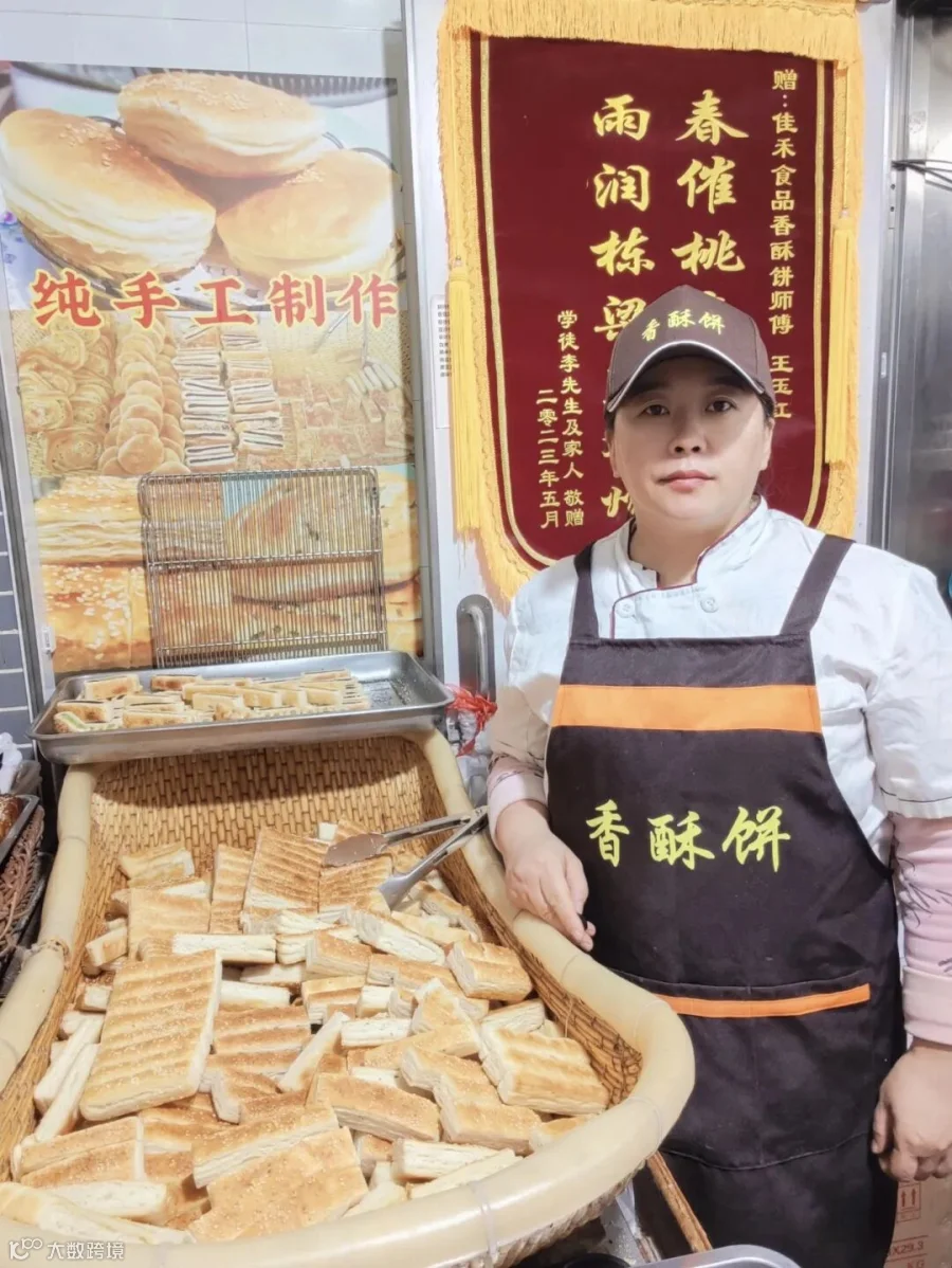 撩开新安市场二楼餐饮街的门帘,无论你是早上、中午还是傍晚来到这里,扑鼻的酥饼香气都会迎你而来。