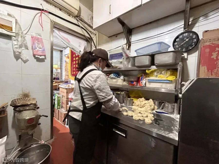 ——我03年到上海,做过奶茶店、饭店,开香酥饼店已经有近10年时间了,最早是在兰坪菜市场,当时也是敏众公司的产业,后来就搬到新安市场,在新安也有五六年了。