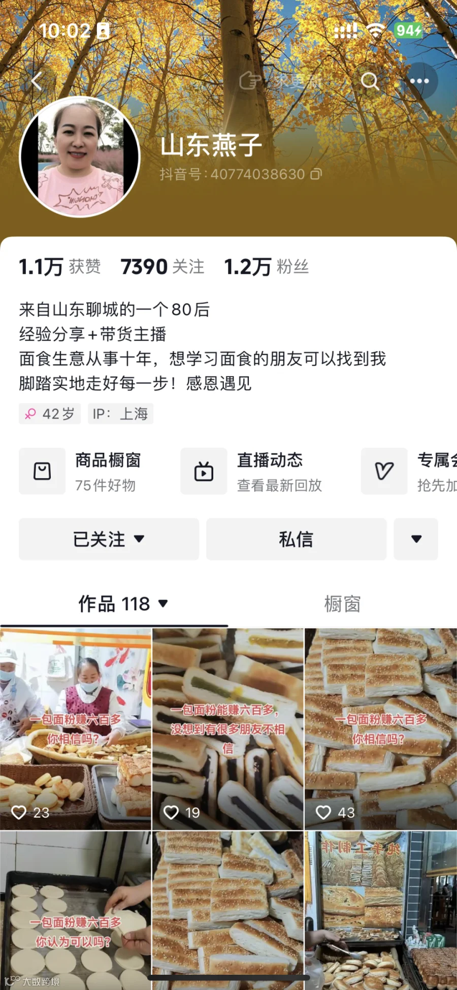 王玉红告诉敏众集团的戴书记:“每天什么时候开工,什么时候就开始直播。”王玉红是一位从山东聊城来到上海打拼的80后,她做山东特产香酥饼已经十几年了。在疫情期间,由于无法正常营业,王玉红开始尝试网上直播怎么制作香酥饼。出人意料的是,网友们喜欢观看她制作饼的过程,也喜欢和她互动留言。随着直播场次的增多,王玉红的抖音账号“山东燕子”的关注人数也越来越多,后台也不断有粉丝私信王玉红请教饼的制作教程。