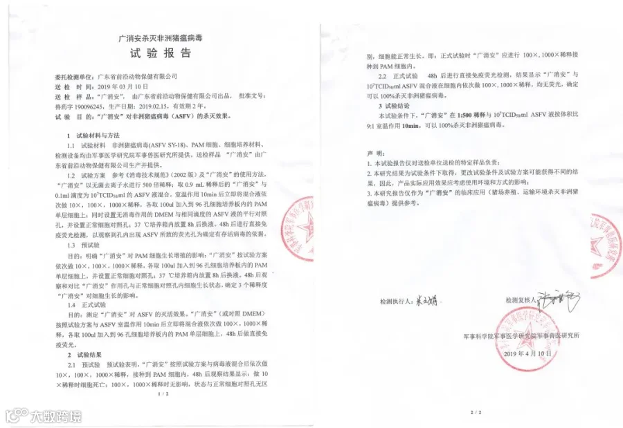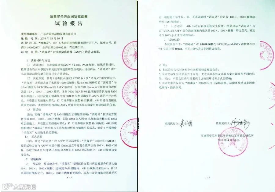 国内首先经权威机构认证“消毒灵”在1:1000稀释