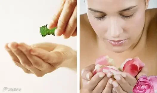 将2滴玫瑰精油加入5ML基础油,在日常护肤后,由下至上涂抹于全脸,四指指腹以螺旋纹方式,先由额头至两侧太阳穴,再由下往上按摩脸颊。