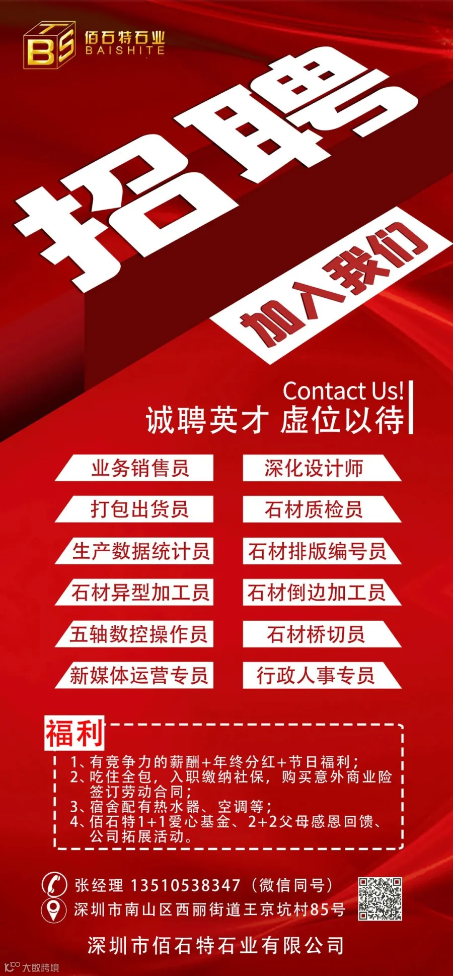 2、有石材行业经验、懂石材加工生产的优先考虑;