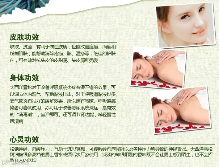 雪松是人类所利用的历史悠久的芳香植物之一,古埃及人生活中广泛应用此油,其文献更记载它对皮肤保养的功效,甚至在埃及的木乃伊中也可以找到雪松的成分,雪松精油是人类最早提炼的精油之一。