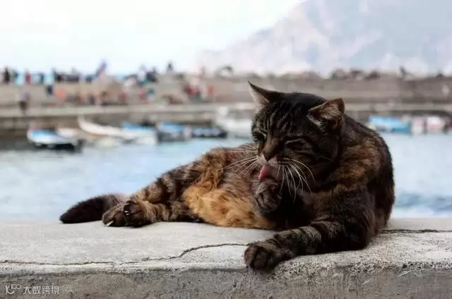 在五渔村有许多慵懒的流浪猫,但凡有平面的地方,即使是长凳、屋顶、路中心等,肥猫都可以“大觉训”,不怕偷袭。