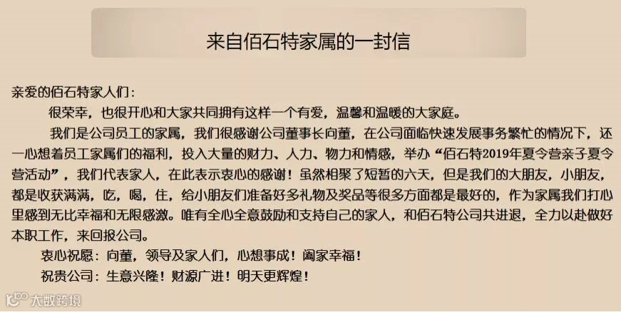 公司董事长向伟先生除了给每个孩子都准备了一份精美的文具套装作为纪念品以外,还别出心裁的为品学兼优的小朋友们设置了特别奖--品牌书包一个,并对所有在员工背后默默支持奉献的家属们表达了诚挚的感谢。小朋友们都很开心,纷纷表示回去以后一定会好好学习,争取明年也能领到特别奖励。