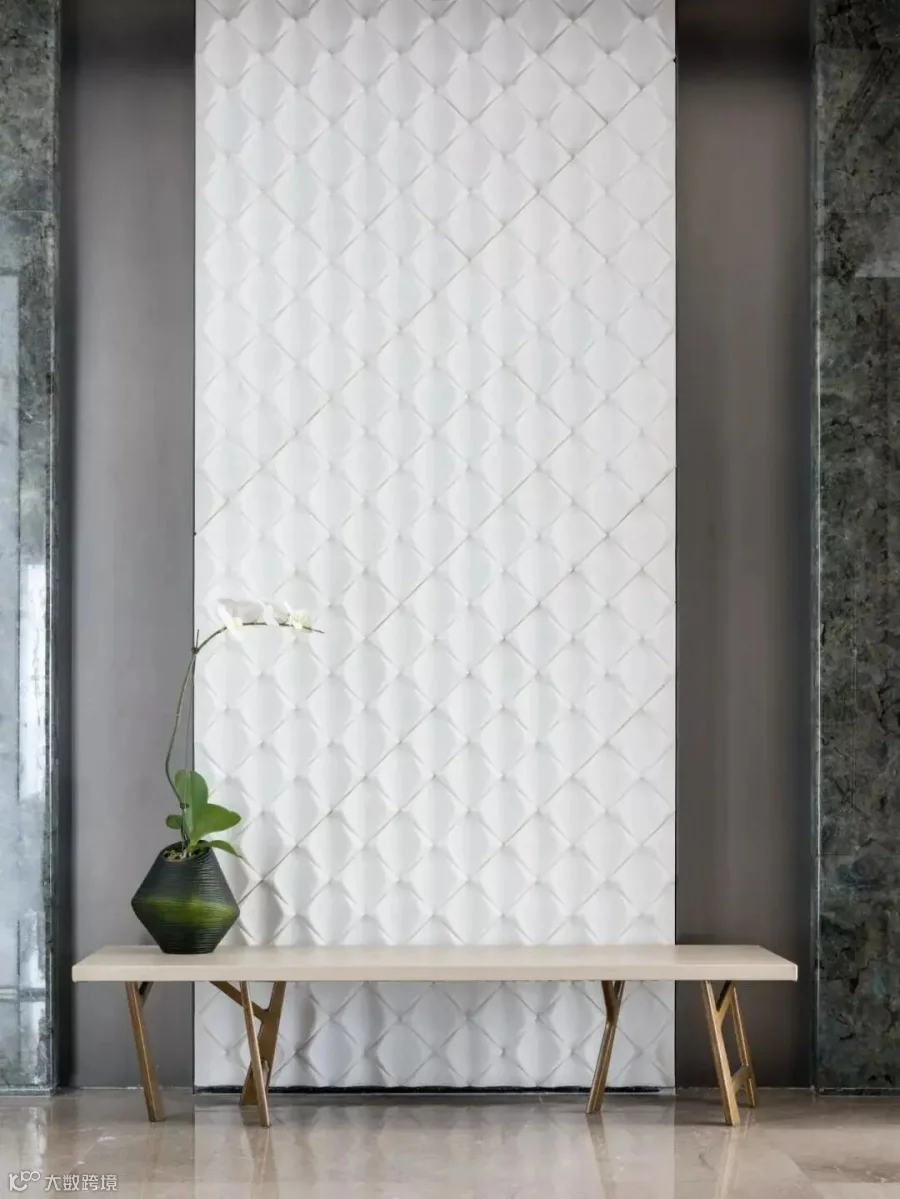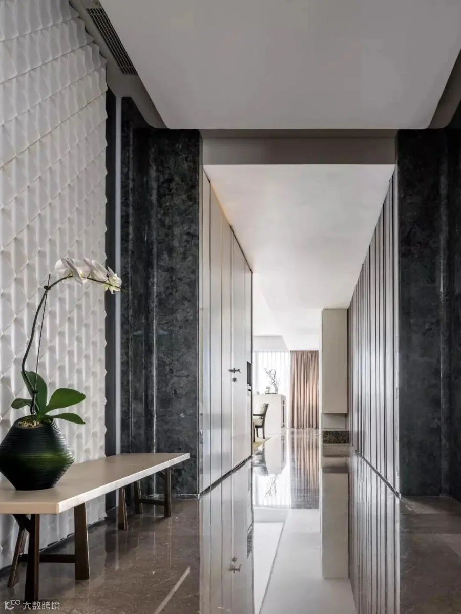 玄关处,纯白素净的汉白玉处理面背景