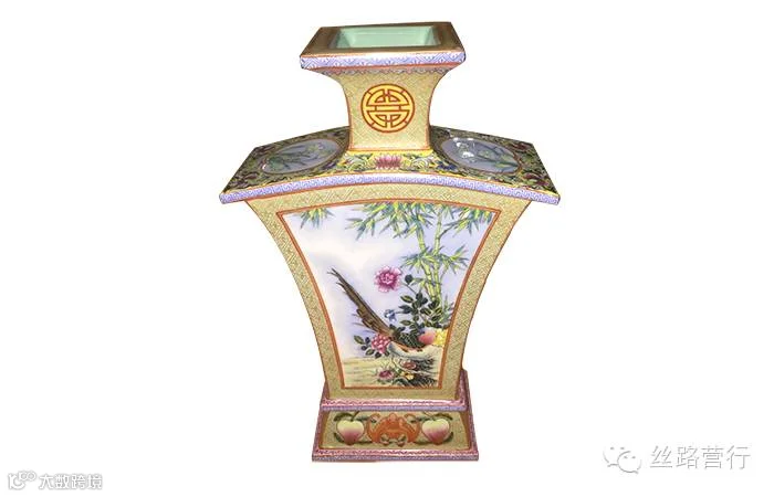 晚清粉彩开光四角瓶