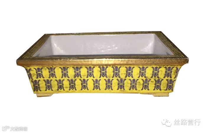 晚清粉彩首字纹水仙盆