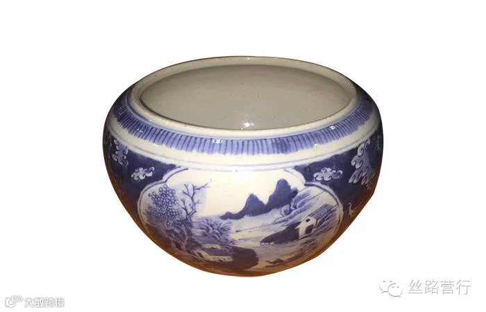 晚清青花龙纹山水缸