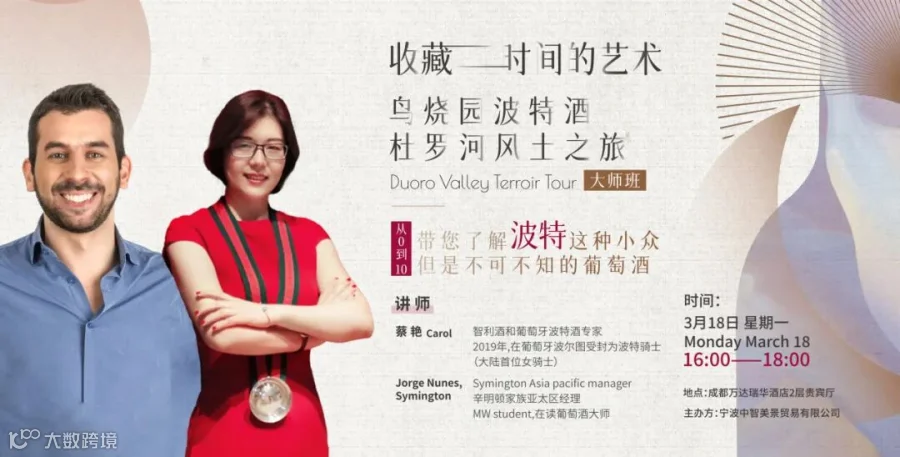 3月15-19日,宁波中智美景贸易有限公司将在HOLAVINO葡萄酒主题展万达瑞华酒店二层K20展位亮相,3月18日下午邀你前来酒店2层贵宾厅,一起走进收藏时间的艺术-鸟烧园波特酒 杜罗河风土之旅,品味时间的艺术,手工的艺术。