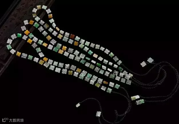 高档翡翠有时仅用素绳节艺,以突出翡翠本身的美感,有时也会配桃红碧玺、绿翠节珠,碧玺的透明度高,颜色美丽,与高绿老种的翡翠相得益彰。高绿翠珠成本也很高,适合高档翠佩。