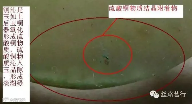 沁入之物刚刚进入玉皮,尚未进入玉的肌理,就像长了一层薄雾。时间一般需要150年以上。