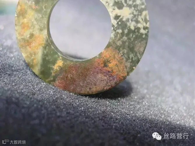 芝麻点沁分布在玉器的里面,星星点点的,常在全色沁的基础上形成,形成点缀的效果美。时间约在1500年以上。