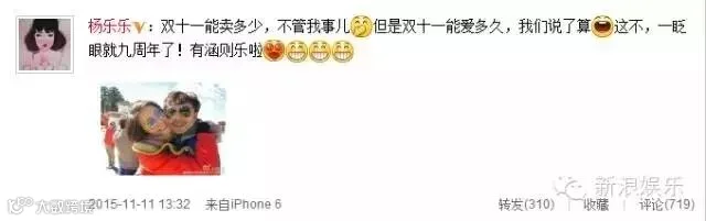 话说双十一真不是吹的,平常鲜少秀恩爱的杨乐乐都更博了。