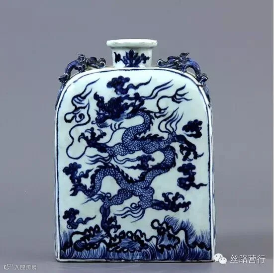 1号 青花龙纹四方扁壶 高:24cm