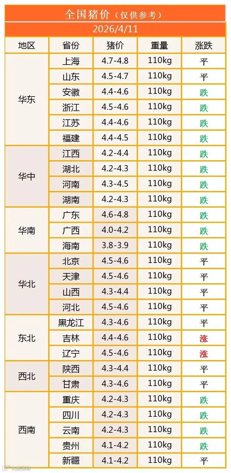 明日猪价2026年4月11日猪价信息