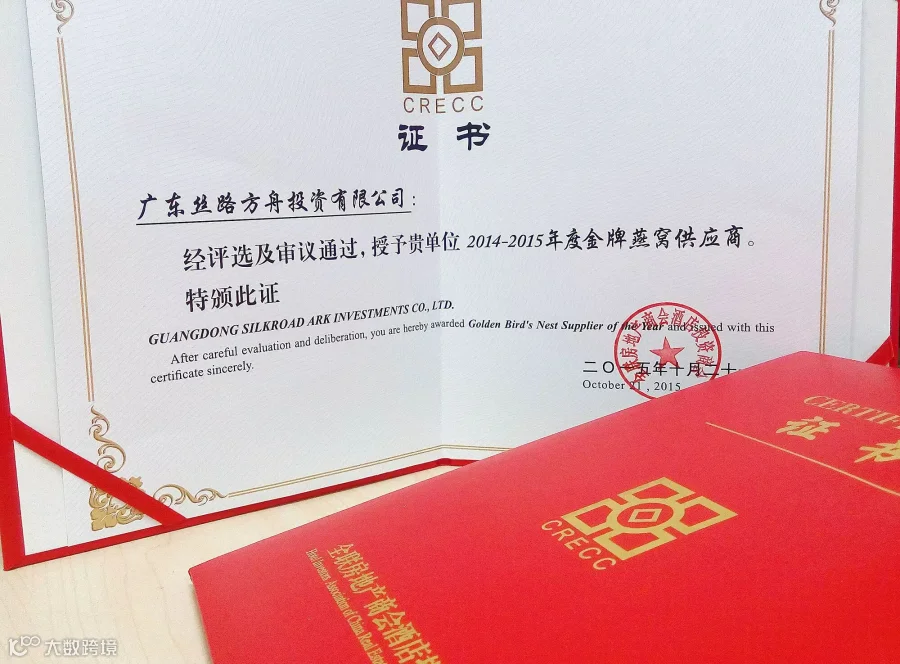 全联房地产商会酒店投资商会授予广东丝路方舟投资集团“金牌燕窝供应商”殊荣