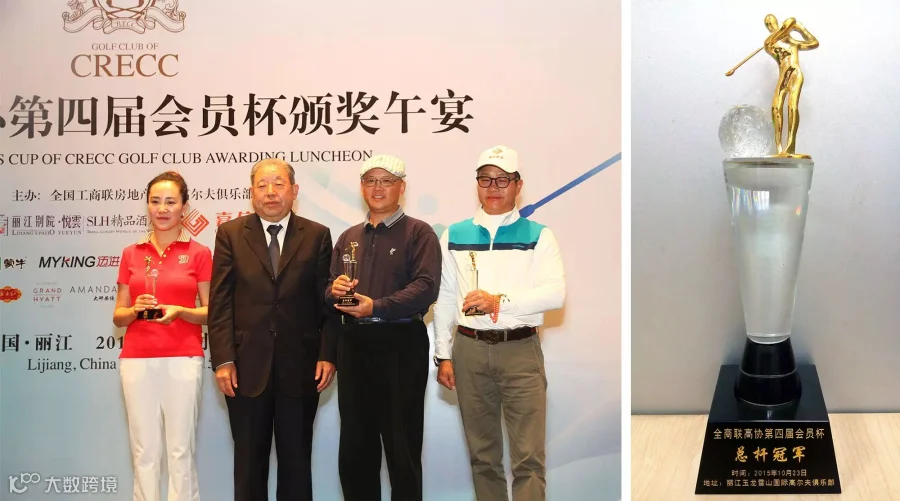 李贽先生在“全商联高协第四届会员杯邀请赛”上获得总杆冠军,国家旅游局原副局长程文栋先生(左二)为其颁奖