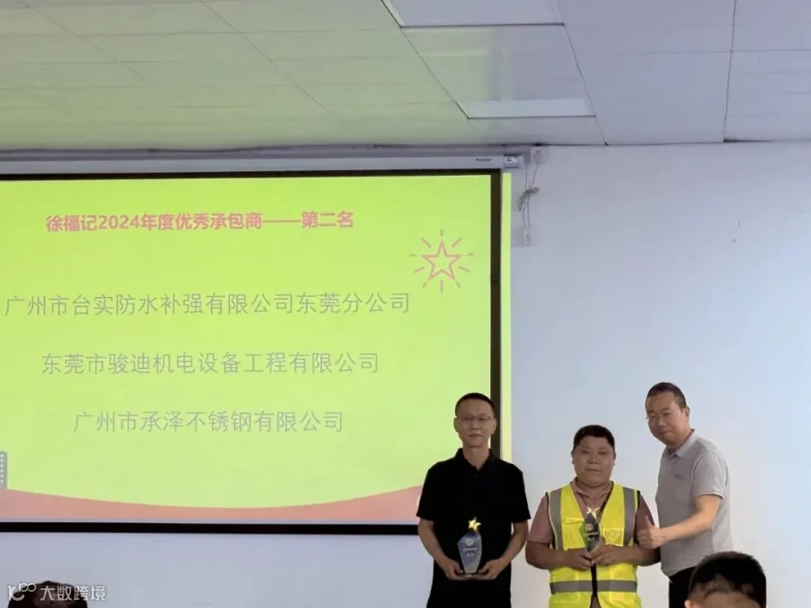 台实凭借优质的产品品质、专业的服务能力与稳定的供应水平,赢得合作伙伴高度认可,不仅荣获建艺集团“2024年度最佳供应商”奖,东莞分公司也斩获徐福记集团“2024年度承包商”奖,夯实台实在建筑防水、修缮服务领域的市场口碑,增强企业在供应链与工程承包领域的市场竞争力。