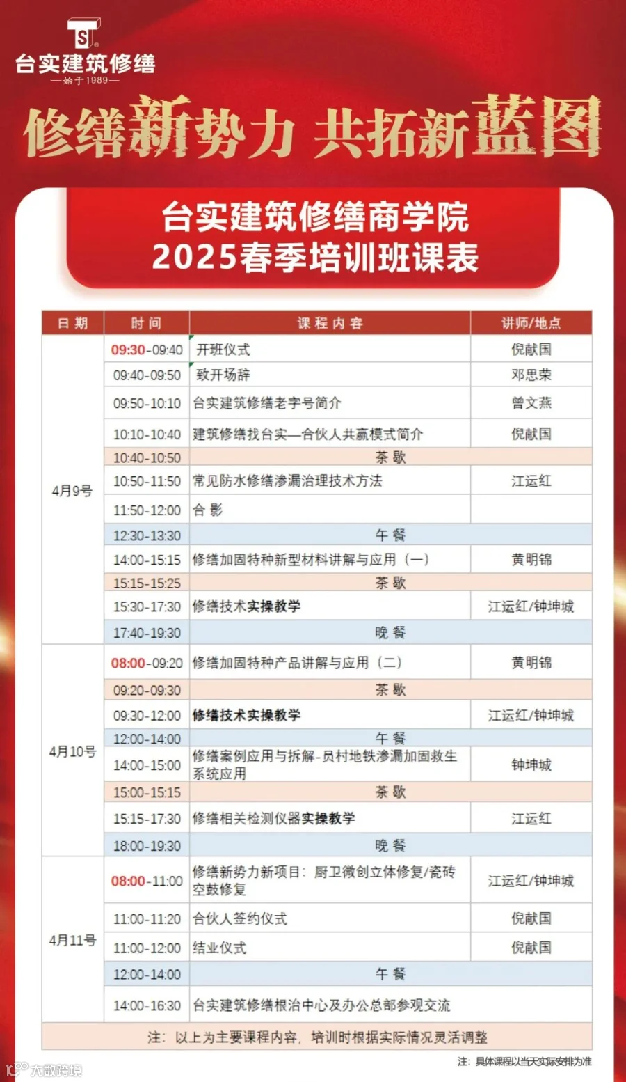 作为市政修缮领军品牌的台实即将开展以“修缮新势力 共拓新蓝图”为主题的建筑修缮培训班,汇聚顶尖的专家与资深从业者,在此诚挚地邀请您参加,共同探讨建筑修缮行业的新趋势、新产品、新技术、新模式,共赢共创。