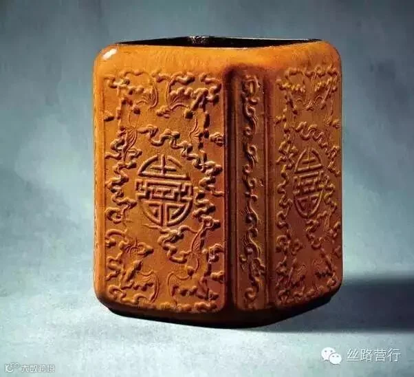 乾隆御制模印葫芦“云蝠捧寿”圆四方抹角笔筒,“乾隆赏玩”款