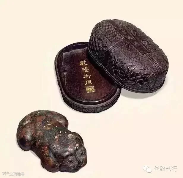 乾隆御制紫檀刻包袱纹“虎伏研”盖盒,描金“乾隆御用”款