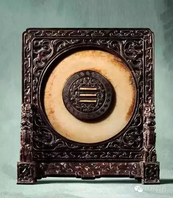 乾隆御制紫檀木嵌素古玉璧御题诗插屏