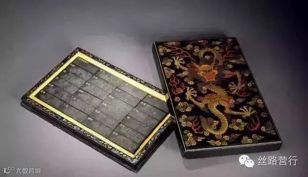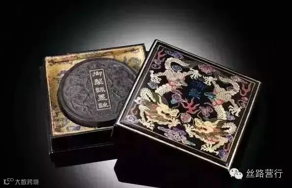 乾隆御制《咏墨诗》圆墨连彩漆镶螺钿双龙戏珠盒
